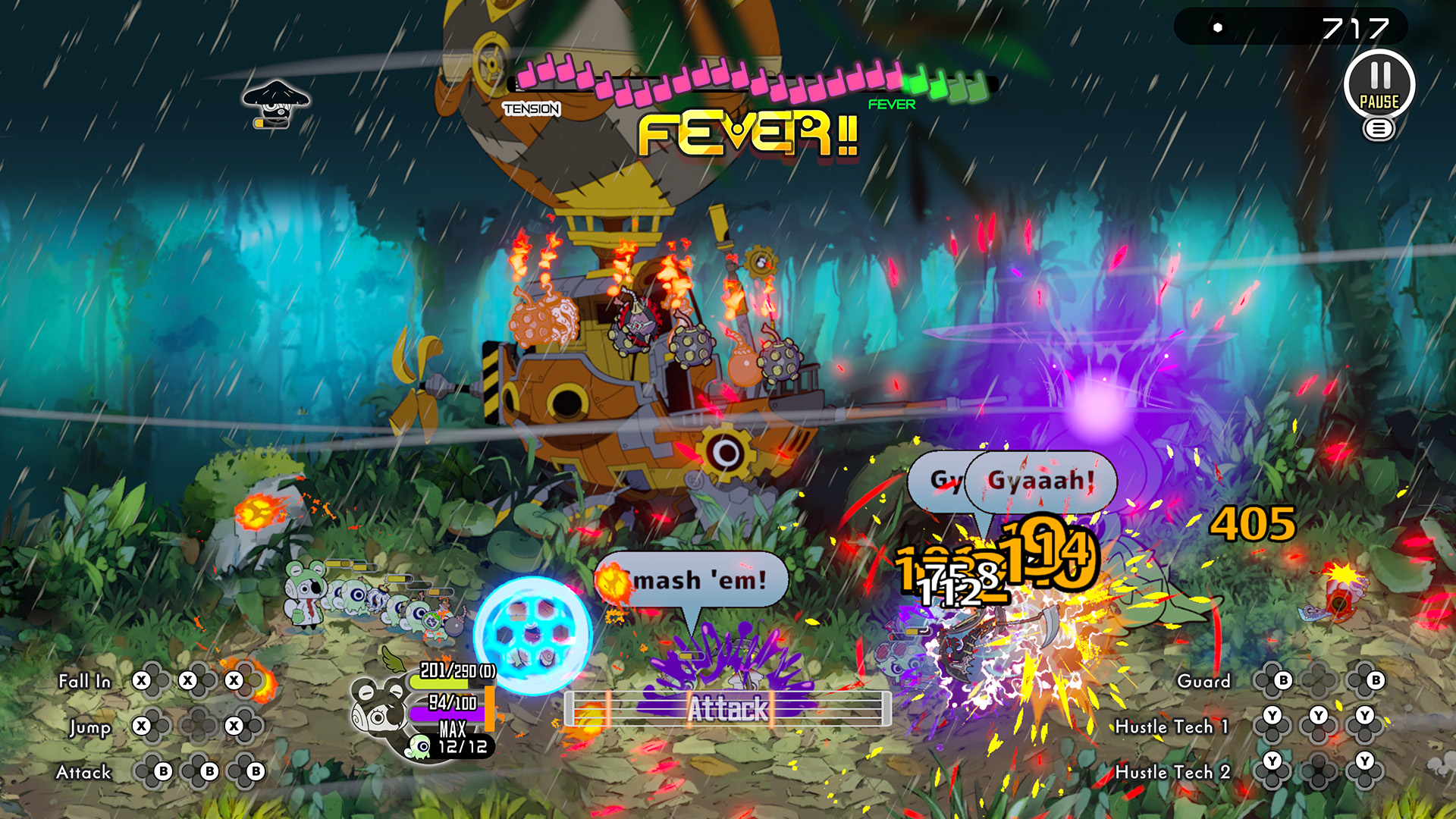 Terwijl je je van links naar rechts over het muzikale slagveld begeeft, komen de meest knotsgekke beesten voorbij die je leger uit proberen te dunnen. Na ieder gevecht krijg je een kleine beloning en kun je kiezen wat je wilt verdienen voor de volgende veldslag. Denk hierbij aan donuts of snoepgoed, waarmee je in de hubwereld permanente upgrades vrij kunt spelen, of Ratakaruta: kaarten die je tijdens je run sterker maken. Speel je een level met veel vurige vijanden, dan kan het lonen om voor de waterupgrades te kiezen, et cetera.
