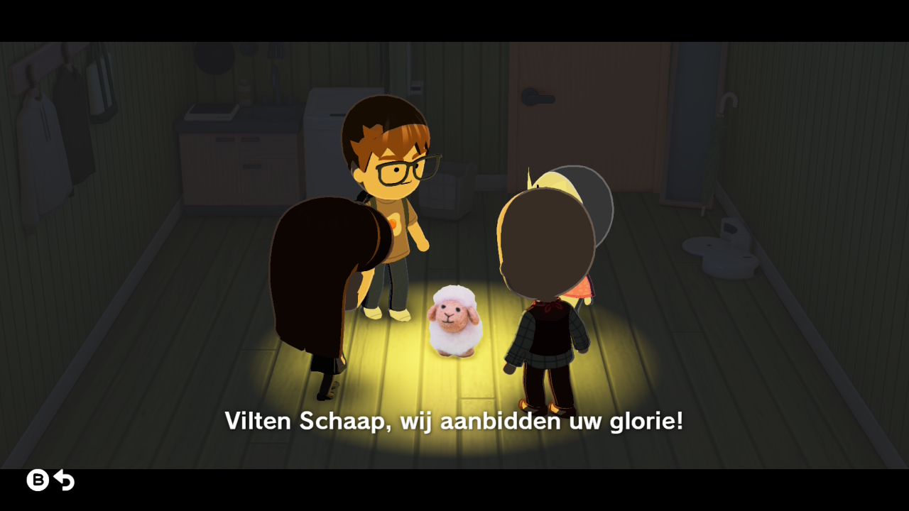Deze Mii’s leven hun eigen leven, maar zullen je regelmatig om hulp vragen. Zo had de 90-jarige Bassie nogal moeite om vrienden te worden met de jongere eilandbewoners. Ik gaf hem een streetdance-instructie-dvd om indruk te maken op de jeugd, en nu vertellen ze grootse verhalen over Bassieworst. Wat hier ongelooflijk goed werkt, is de Nederlandse vertaling van de game. Die is droog, scherp en tovert steeds weer nieuwe krankzinnigheden uit de hoge hoed. De Mii’s spreken je zelf ingevoerde gespreksonderwerpen hardop uit, waardoor je constant wordt verrast door de ene na de andere knotsgekke dialoog, wat me vaker dan ik toe durf te geven liet gniffelen achter mijn Switch. Wat dat betreft draait deze nieuwe Tomodachi Life de absurdistische kraan vol open, wat van elke keer dat je de game opstart weer een klein feestje maakt.