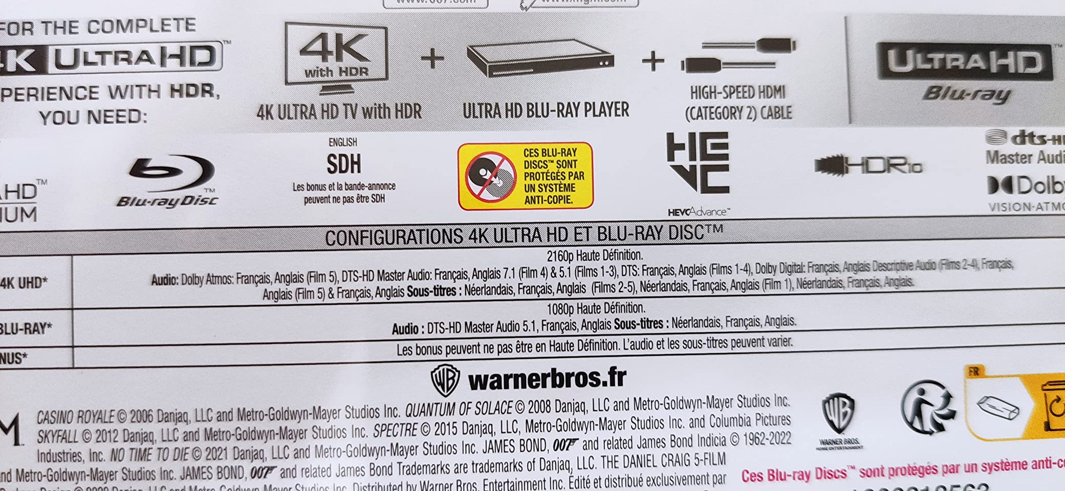 Skyfall lijkt enkel Franse ondertiteling te hebben op de 4k boxset.