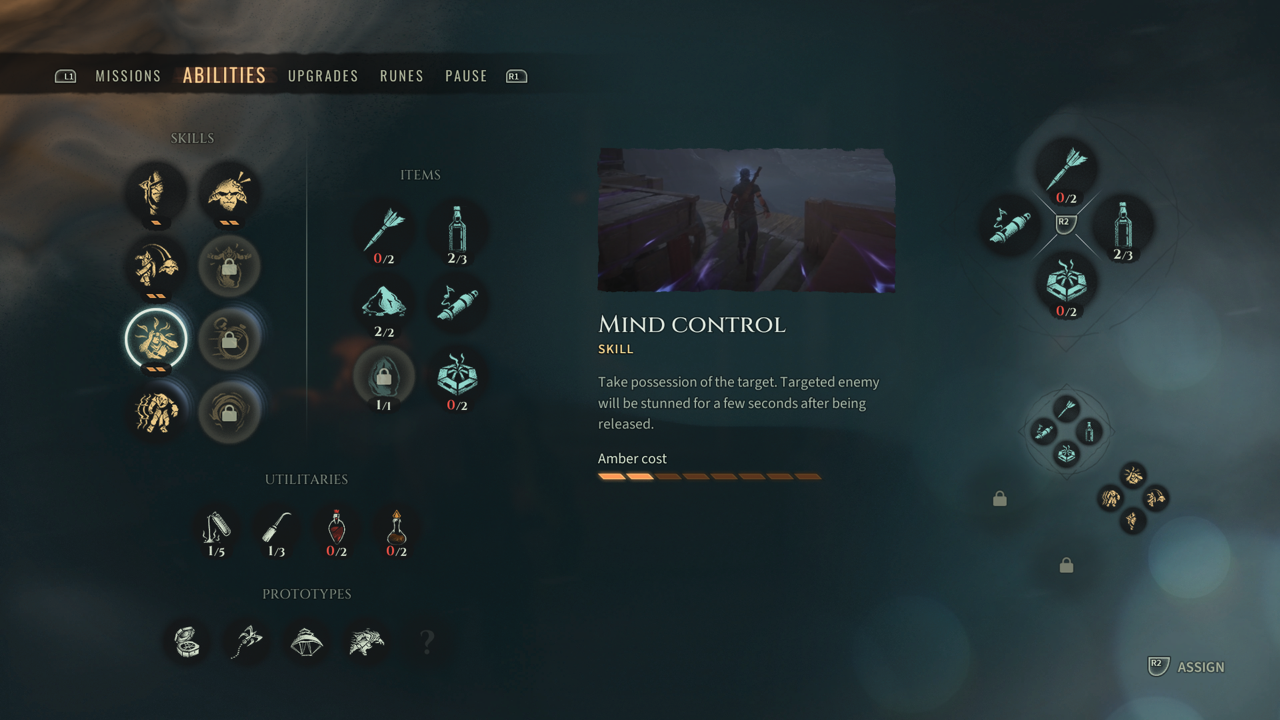 Hoe kan het in godsnaam dat Styx: Blades of Greed hieronder alsnog, met de hakken over de sloot weliswaar, slaagt voor mijn eindoordeel? Wel, onze goblinvriend mag zich in zijn harige handen knijpen dat hij een arsenaal aan gereedschappen ineen kan knutselen die het spel interessant maken. Zo kan Styx, mits hij voldoende grondstoffen heeft, op eender welke locatie pijlen of giftige valstrikken uit zijn hoed toveren waarmee hij zijn vijanden kan belagen. Styx kan ook, allemaal zonder werkbank of ketel in zijn buurt, flesjes met levenselixir of amber brouwen. Amber is het goedje dat Styx magische krachten geeft: zo kan hij voor een korte tijd onzichtbaar worden, zichzelf klonen ter afleiding, aanvallen ontwijken en – mijn persoonlijke favoriet – vijanden (of zelfs je eigen kloon) manipuleren om allerhande zaken te doen die best in het scenario passen. Meestal is dat gewoon een eind verder weg gaan lopen zodat je uit het zicht bent, maar je kan hen ook hendels laten bedienen of zichzelf de dieperik in laten storten. De keuze is aan jou.