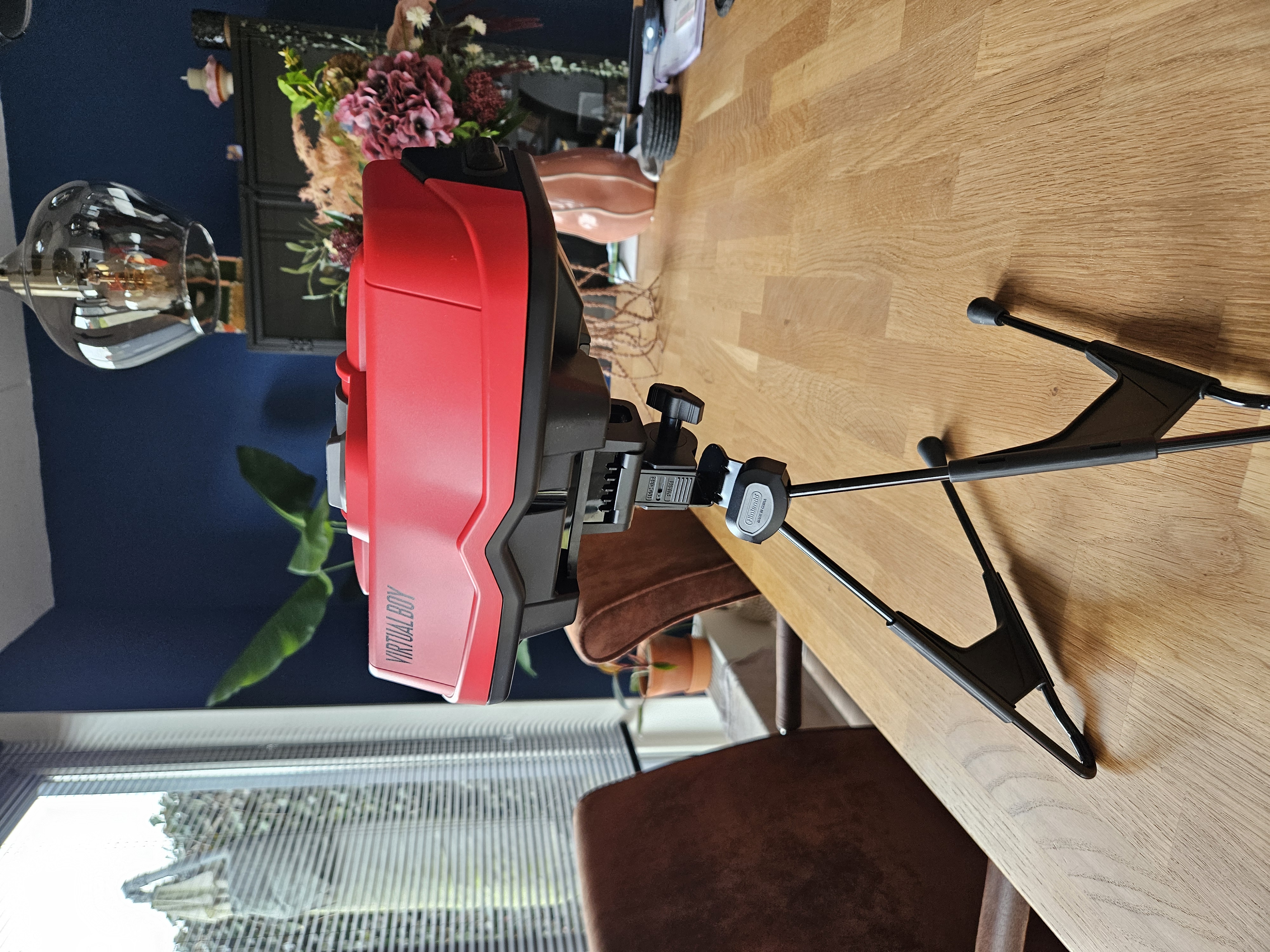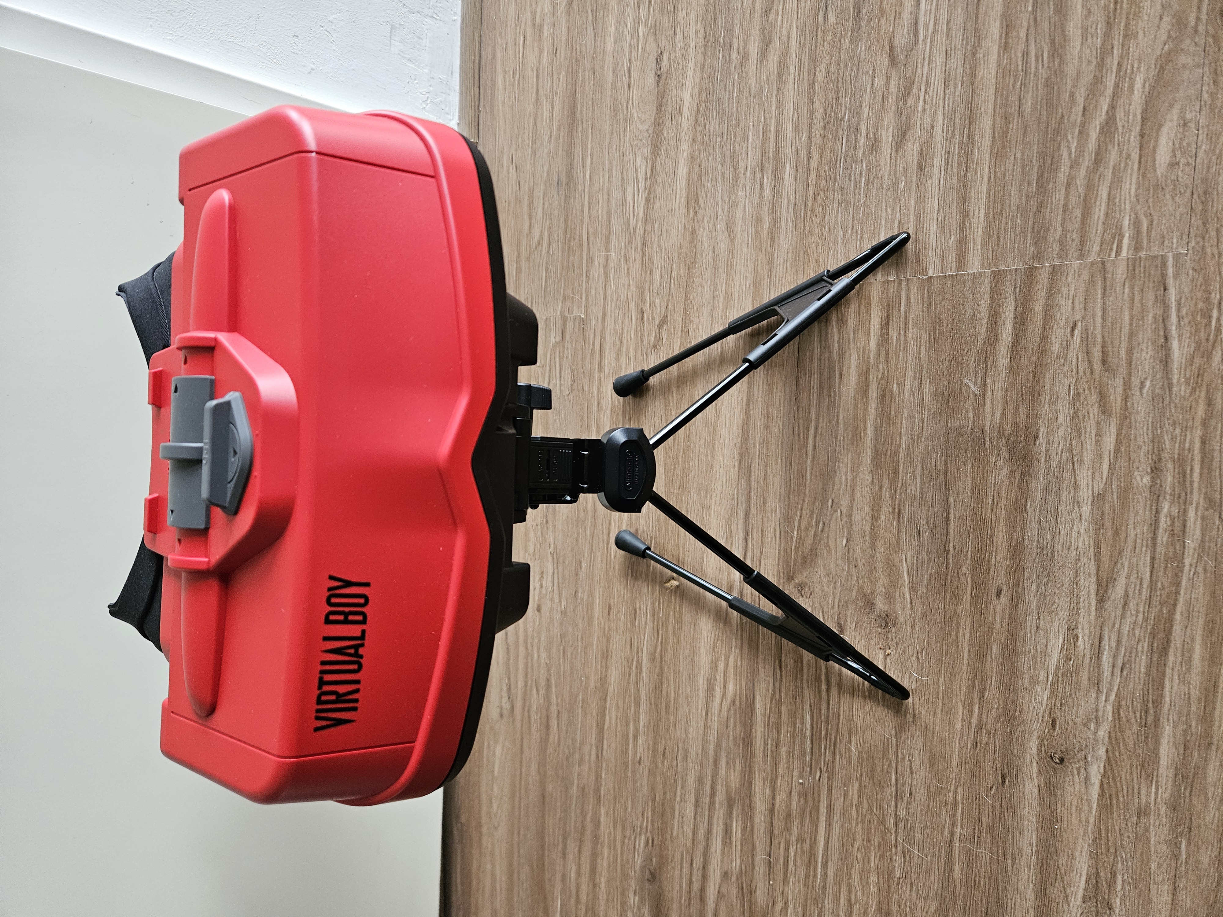 Naast dat ik dus vrij snel misselijk werd van het spelen in VR op de Virtual Boy, moet je goed nadenken over de houding die je aanneemt. Toen ik de Virtual Boy op mijn tafel had gezet en door de rode lenzen heen keek, kreeg ik al snel last van mijn nek. Die houding is gewoon heel erg onnatuurlijk. Door de Virtual Boy op een verhoging te plaatsen was dit probleem gelukkig opgelost. Een andere oplossing voor dit probleem is om hem bijvoorbeeld in een open kast te zetten zodat je er staand kunt spelen. De bijgeleverde voet is overigens wel in hoogte verstelbaar, maar dat zal voor de meeste mensen onvoldoende zijn om goed aan een tafel te kunnen spelen.